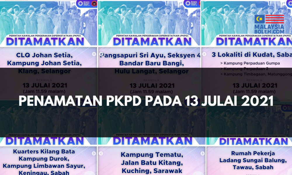 Penamatan Perintah Kawalan Pergerakan Diperketat (PKPD) akan ditamatkan dibeberapa kawasan seperti yang dinyatakan oleh Timbalan Perdana Menteri, Menteri Pertahanan melalui kenyataan media semalam, 12 Julai 2021....